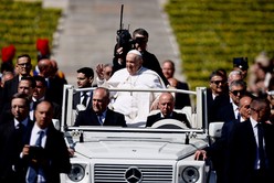 El Papa Francisco se retira después de la audiencia general semanal en la Plaza de San Pedro en el Vaticano el 26 de abril de 2023. Crédito: Guglielmo Mangiapane / Reuters