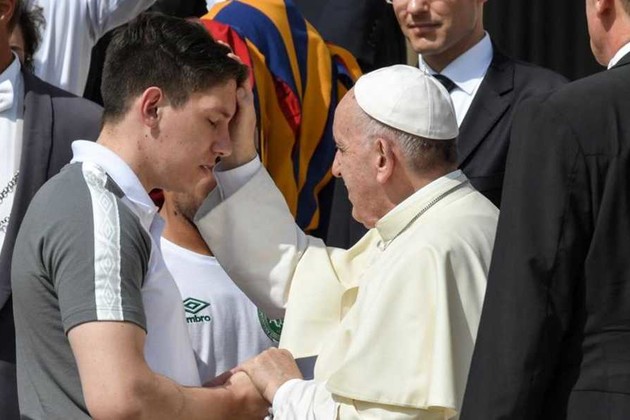 Papa Francisco recibió este miércoles al plantel y dirigentes del equipo de fútbol brasileño Chapecoense, que en noviembre del año pasado sufrió un accidente aéreo. El encuentro se produjo tras la audiencia general celebrada en la Plaza de San Pedro.