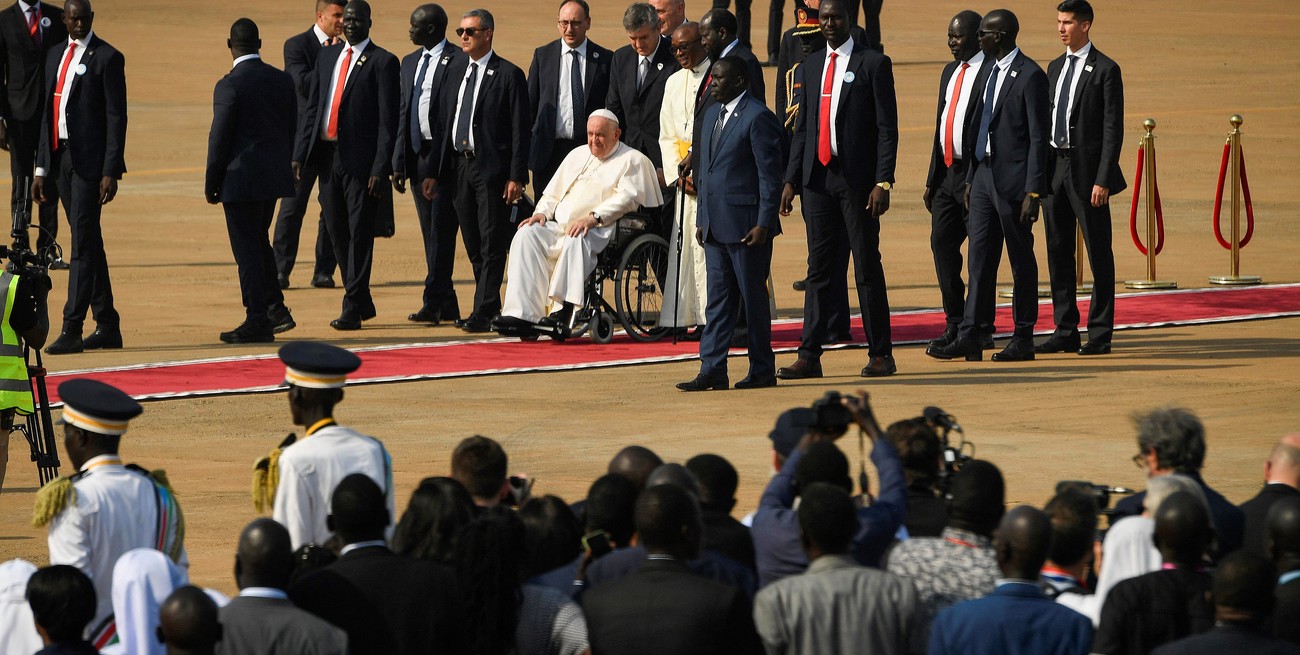 El Papa Francisco arribó este viernes a Juba, Sudán del Sur, la segunda y última escala de su viaje por África, donde permanecerá 48 horas en las que intentará promover la paz y la reconciliación en el país más joven del mundo, que figura entre los más pobres del planeta y está devastado por una guerra civil.
