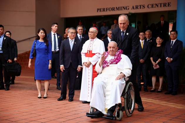 Finalmente, en Singapur, el Papa fue recibido por el presidente Tharman Shanmugaratnam y el primer ministro Wong Shyun Tsai.