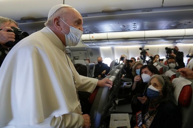 Francisco habló del 8M durante la conferencia de prensa que ofreció en el avión que lo trajo de regreso a Roma después de una gira de tres días por Irak.