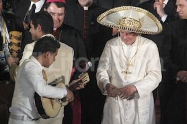 El papa Benedicto XVI sorprendió anoche a miles de personas que lo esperaban frente al Colegio Miraflores de la ciudad mexicana de León, donde se hospeda, al salir a saludarlos en medio de una serenata de mariachis.