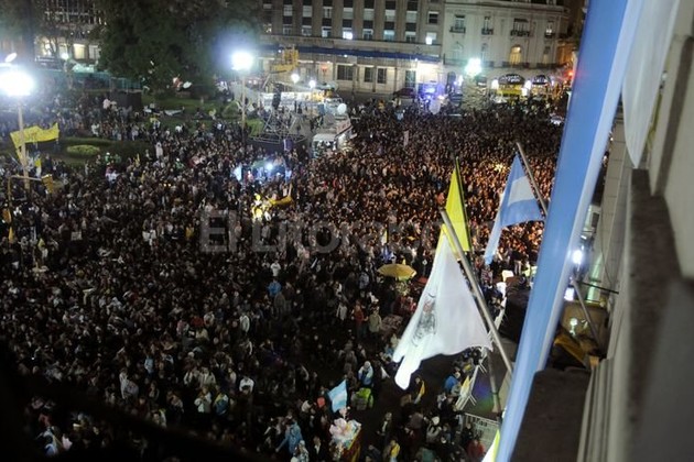 "Tenemos una llamada del Papa", dijo a las 3.30 el cantautor Carlos Seoane, desde el altar montado frente a la Catedral y los jóvenes que participaban de la ceremonia de oración enmudecieron.