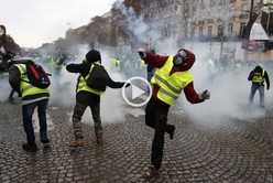 Al mismo tiempo, en la avenida de los Campos Elíseos, algunos chalecos amarillos incendiaron cestos de residuos y contenedores, a lo que la policía respondió desplazando a los manifestantes y con algunos arrestos esporádicos.