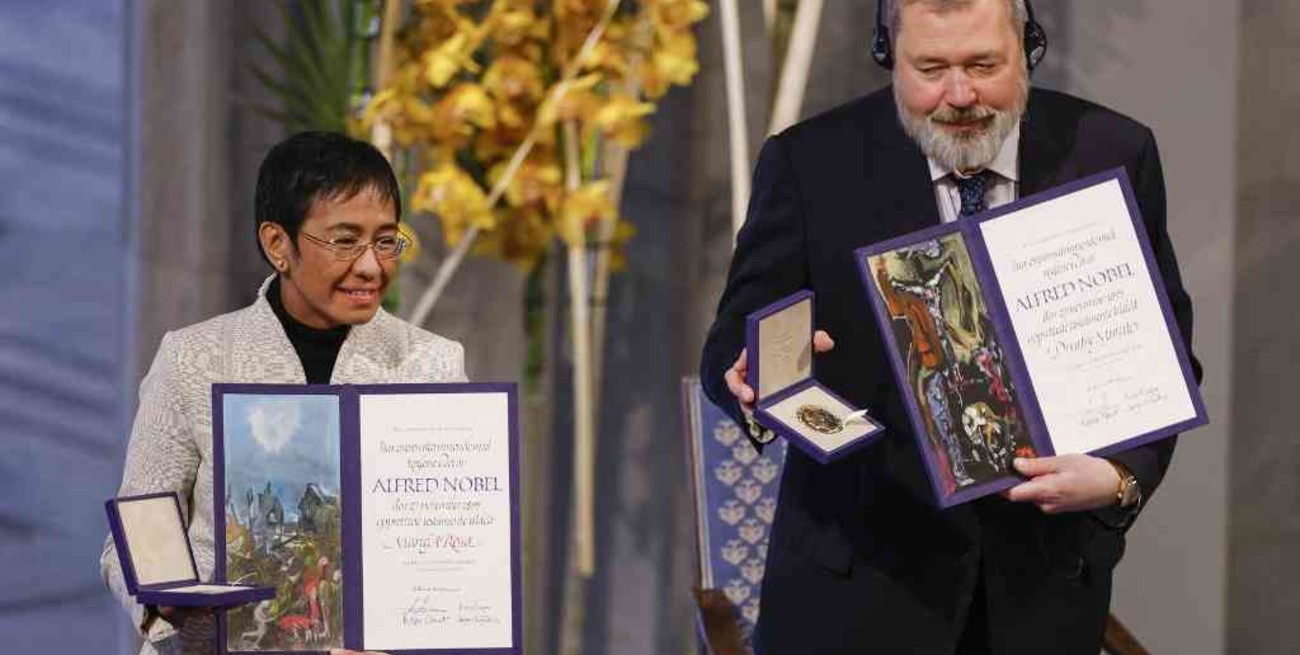 El Comité Noruego del Nobel decidió reconocer en octubre a Ressa y Muratov "por sus esfuerzos para salvaguardar la libertad de expresión, que es una precondición para la democracia y para una paz duradera".