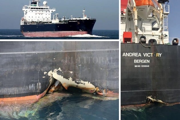 Otro barco afectado por un petrolero de bandera noruega que chocó con un "objeto desconocido" y sufrió un agujero en el casco justo encima de la línea del agua, informó su propietario, Thome Ship Management, en un comunicado.