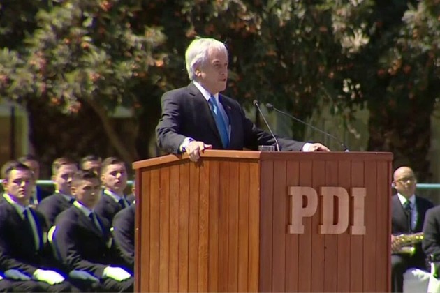 En el acto, donde se graduaron 183 hombres y 77 mujeres, el presidente chileno los incitó a "combatir esa violencia criminal, esa delincuencia sin límite que también está involucrando al narcotráfico, movimientos anárquicos, dentro del marco de la ley y del respeto de los derechos humanos".