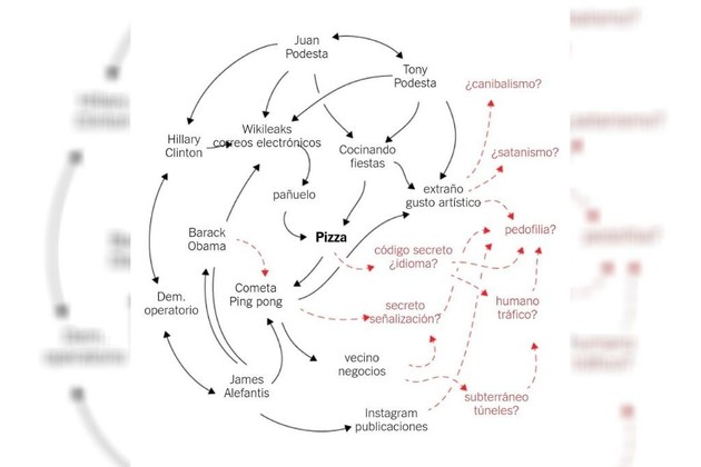 Luego, el dueño de la pizzería fue arrastrado a los rumores en los tableros de mensajes. Los detectives aficionados en línea vincularon la señalización de la pizzería con símbolos satánicos. Al mismo tiempo, surgieron historias falsas que ubicaron al restaurante en el centro de una red de trata de niños.