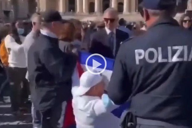 La policía del Vaticano le quitó la bandera a un cubano que escuchaba la Misa del Angelus oficiada por el papa Francisco este domingo en la Plaza de San Pietro. El joven se encontraba de pie, en silencio, con la bandera abierta sobre su pecho, y fue abordado por varios guardias de Seguridad que le quitaron el estandarte.