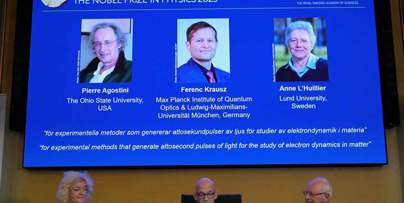 El científico francés Pierre Agostini, el austríaco-húngaro Ferenc Krausz y la franco sueca Anne L'Huillier fueron galardonados hoy con el premio Nobel de Física por el desarrollo de métodos que permitieron mejorar el estudio de la dinámica de los electrones en los átomos, lo que abre la puerta a numerosas aplicaciones como así también comprender el comportamiento de los electrones en un material o mejorar la precisión de un diagnóstico médico.
