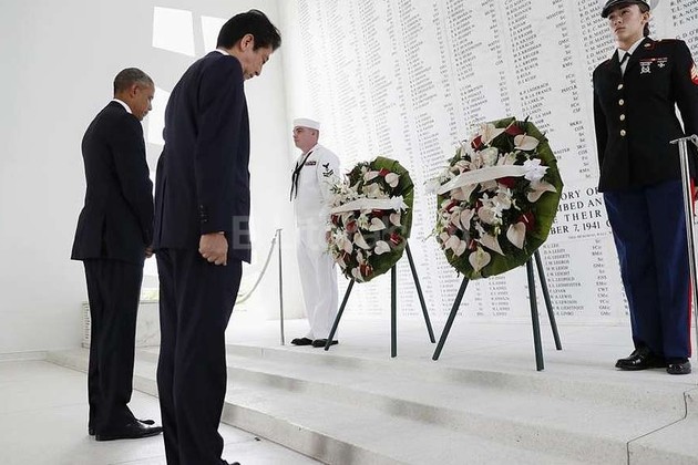 Abe fue hoy el primer mandatario japonés que visitó el memorial en recuerdo de los más de 2.400 estadounidenses que murieron el 7 de diciembre de 1941 en el bombardeo de 300 aviones nipones, y también el primero en acudir al lugar en el que ocurrió junto a un presidente norteamericano.