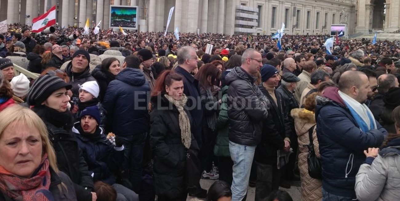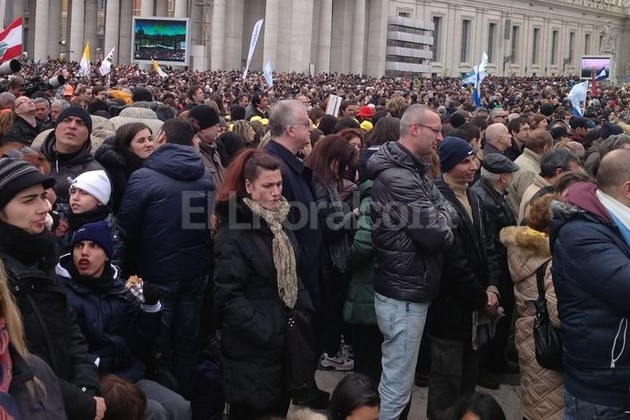 11 am. Desde el Funeral de Papa Wojtyla no veía tantos medios de comunicación en esta zona, de todo el mundo, en todos los idiomas, y cuantas banderas argentinas por las calles. Después de un poco de fila logré llegar al centro de la Plaza, la Policìa Romana hizo un breve control a mi cartera, me detuve dos segundos para observar el lugar en donde me encontraba; las columnas del Bernini parecen más lindas e imponentes. Gente gente gente.. banderas argentinas.. gente gente gente... yo me emociono, estoy feliz, en pocos minutos por esa ventana en la que vi tantas veces asomarse Juan Pablo II y Benedicto XVI, hoy se asomará el Papa Argentino (así lo escucho nombrar por todos lados).