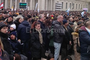 11.30 am. Me acerco a un grupo de amigos argentinos, gente de Buenos Aires, Salta, Córdoba, Santa Fe. Tomamos unos mates, al segundo que sacamos la yerba, camaras y fotógrafos se acercaron a documentar, ese mate que une y calienta en este día tan frío. Esa foto del entonces Cardenal Begoglio que llegó a las tapas de los más importantes diarios italianos, con el mate en mano, ahora genera curiosidad a los cientos de periodistas extranjeros que se mezclan con el peregrino en el medio de la Plaza.