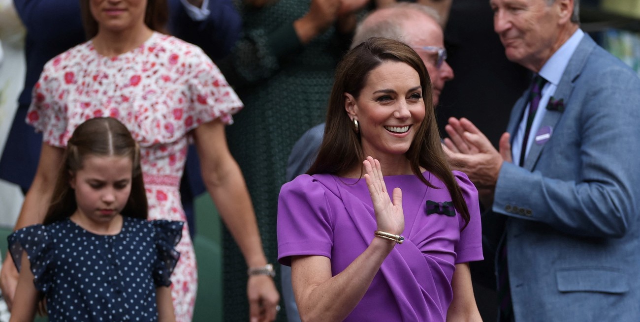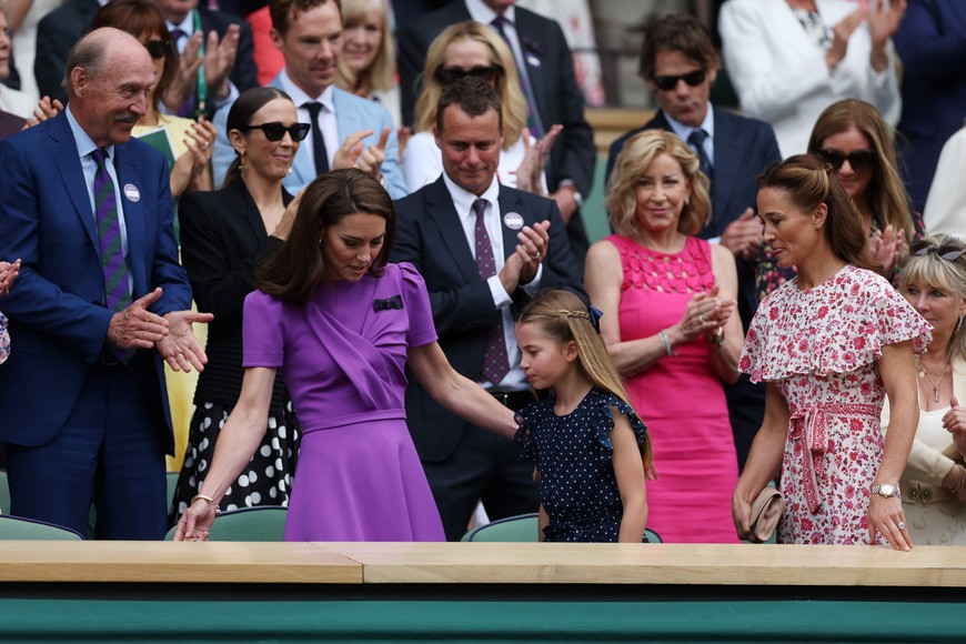 Acompañada por su hija Charlotte, de 9 años, “Kate” fue recibida en la cancha central de Wimbledon con una ovación de pie por parte del público, que la aplaudió calurosamente.