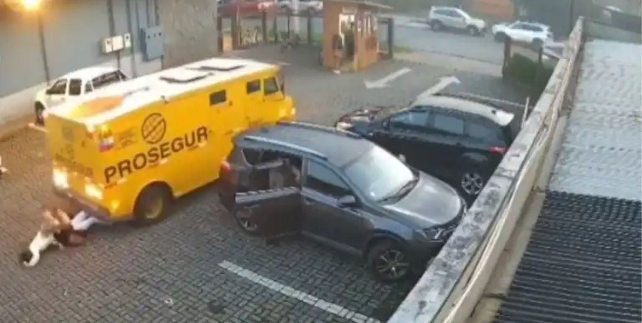La secuencia quedó registrada por cámaras de seguridad y mostró un episodio de extrema violencia en plena maniobra de ingreso. El camión de la empresa Prosegur avanzaba marcha atrás dentro del estacionamiento de una tienda cuando terminó atropellando a dos mujeres que estaban en el lugar.
