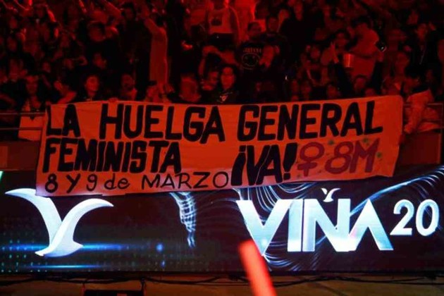 Cuando Valenzuela realizó su show, entró al escenario con un abrigo negro que tenía escritas varias consignas, como "No + impunidad" y "Feminismo es revolución" y interpretó su canción "Los poderosos". con una bandera negra de Chile de fondo.