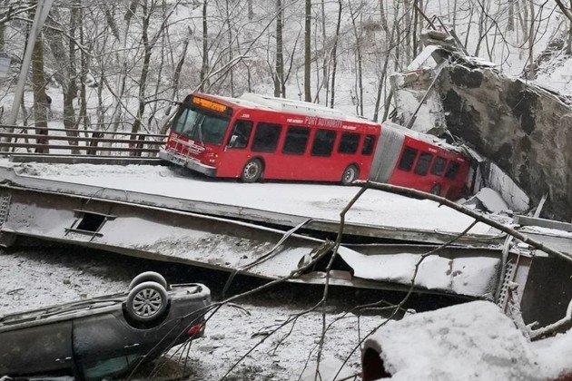 La policía informó que un tramo del puente en Forbes Avenue sobre Fern Hollow Creek colapsó justo antes de las 7 de la mañana. Las autoridades locales dijeron que el desplome provocó una fuga temporal de gas, pero que se cerró el suministro a la zona.