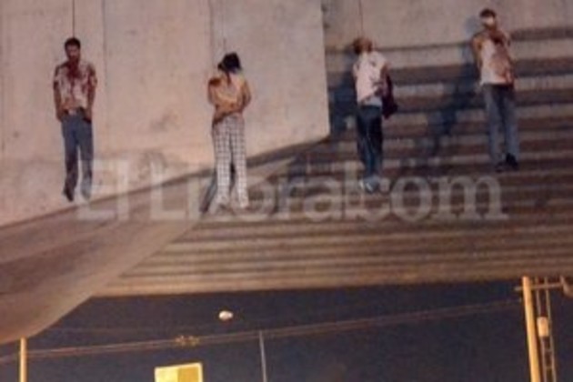 El primer grupo fue localizado por militares a la 01.00 hora local (06.00 GMT) en el barandal oriente del puente ubicado en el cruce de Carretera Nacional y el bulevar Luis Donaldo Colosio, que conecta con el aeropuerto Quetzalcóatl.