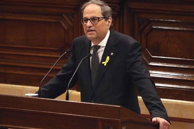 El escritor y abogado de 55 años, férreo secesionista, prometió seguir adelante con el plan para convertir la región en "un Estado soberano en forma de república", abrió la puerta a la unilateralidad y la desobediencia y reivindicó como único "presidente legítimo" a Carles Puigdemont, su antecesor destituido y prófugo.