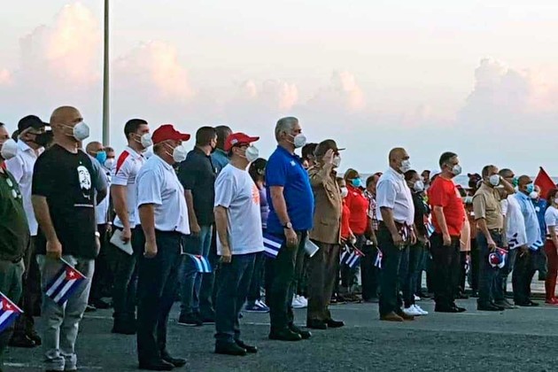 "En defensa de la Revolución Cubana se efectúa acto político-cultural en el malecón de La Habana. Junto al pueblo, el General de Ejército Raúl Castro Ruz, el Primer Secretario del PCC, Miguel Díaz-Canel y otros dirigentes del PCC, el gobierno y las organizaciones de masas”, dice la cuenta oficial cubana.