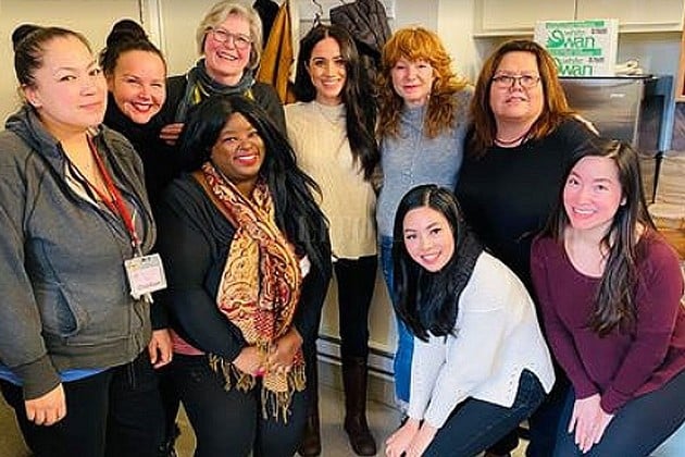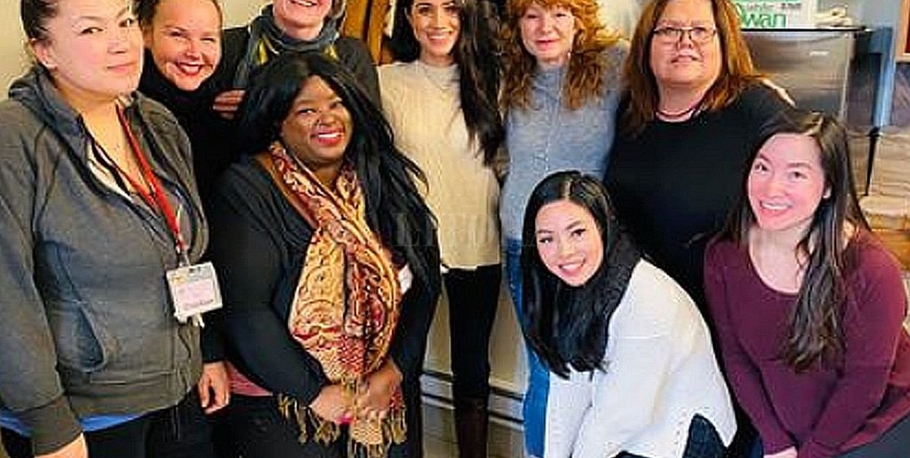 La duquesa fue fotografiada, sonriendo, junto con el personal del Centro de Mujeres del Centro de Eastside el martes. “¡Mira con quién tomamos té hoy!”, escribió el centro en su página de Facebook. “La duquesa de Sussex, Meghan Markle, nos visitó hoy para discutir temas que afectan a las mujeres en la comunidad”.