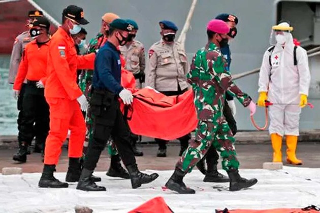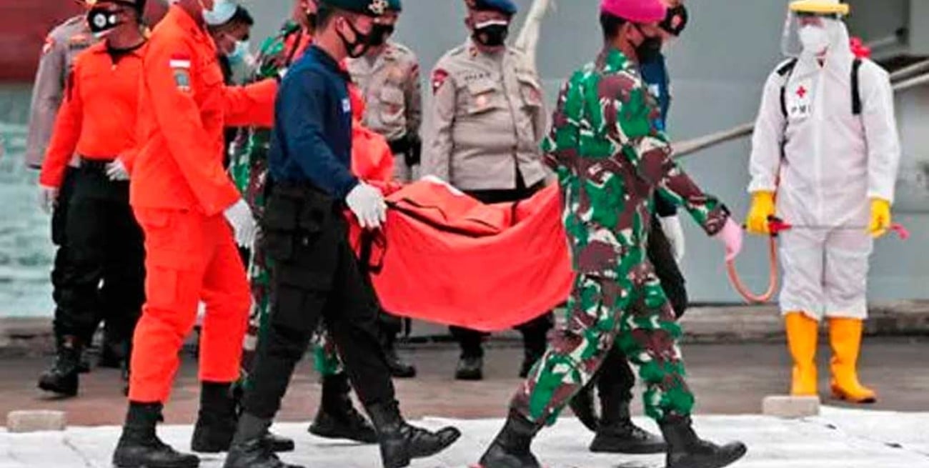 El equipo de rescate informó el domingo por la noche que recuperó restos humanos y partes del fuselaje a unos 23 metros de profundidad en el Mar de Java, donde se estrelló el avión en el que viajaban 62 indonesios entre pasajeros y tripulación, incluyendo 10 niños.