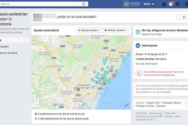 En tanto, Facebook habilitó "Safety Check" (https://www.facebook.com/safetycheck/the-attack-in-barcelona-spain-aug17-2017/) que permite a sus usuarios en Barcelona informar a sus contactos que se encuentran bien sin necesidad de actualizar su perfil.