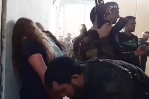 El vídeo, captado por las cámaras corporales de los combatientes de Hamás y que dura poco más de tres minutos, muestra imágenes de las jóvenes Liri Albag, Karina Ariev, Agam Berger, Daniela Gilboa y Naama Levy, ensangrentadas y maniatadas contra la pared, tras ser capturadas por los milicianos en el refugio de la base militar, donde estaban escondidas.