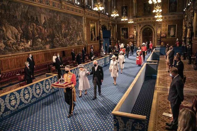 Además, debido a las restricciones de la pandemia, la reina llegó al Parlamento en automóvil en lugar de una carroza y no hubo procesión real.