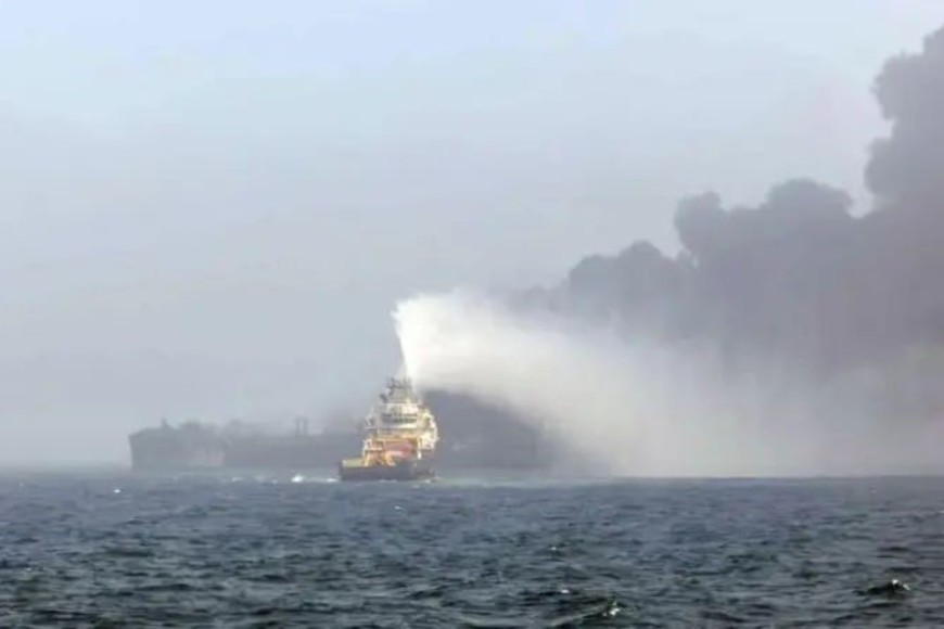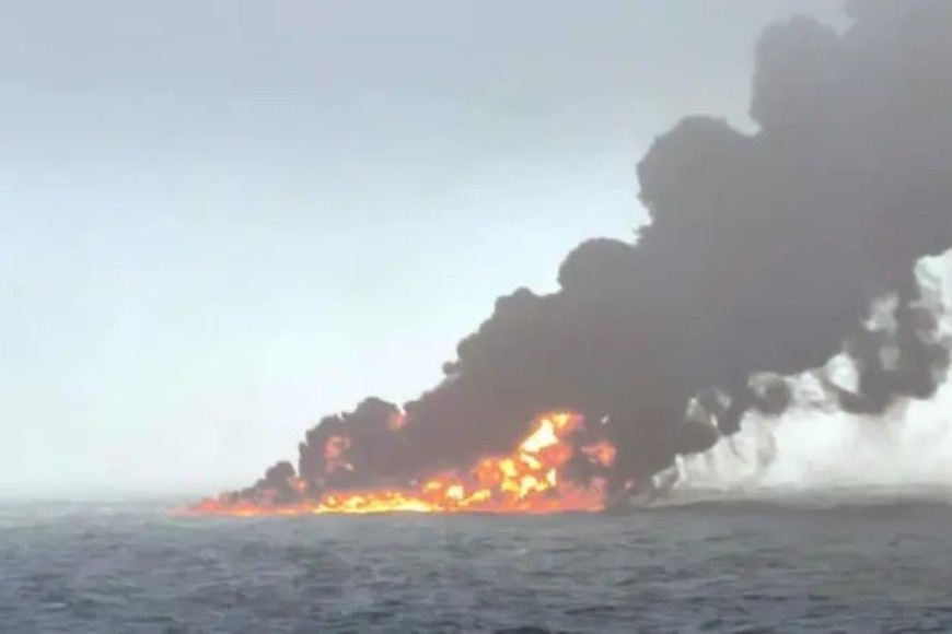 Toda su tripulación, compuesta por más de 20 personas, se encuentra ahora a salvo y se encuentra en condiciones, pero se teme que el combustible para aviones se esté derramando en el mar.