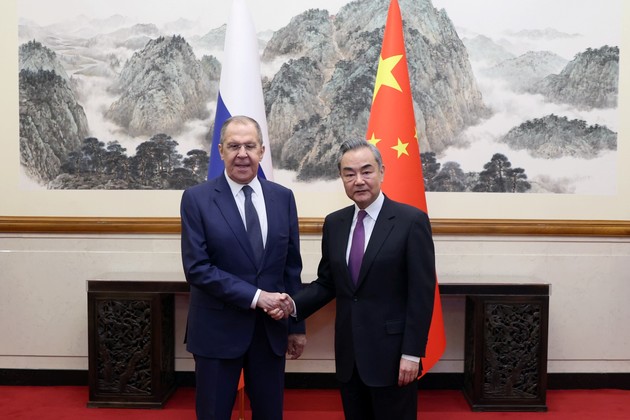 El ministro de Relaciones Exteriores chino, Wang Yi y el ministro de Relaciones Exteriores de la Federación Rusa, Sergey Lavrov, en Beijing, el 9 de abril de 2024. Xinhua.