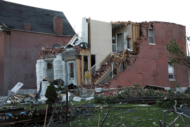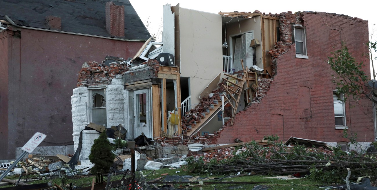 Los pisos superiores del edificio de ladrillo del Harlem Taproom fueron demolidos cuando la tormenta pasó, dejando montones de ladrillos alrededor. Había unas 20 personas dentro, pero se refugiaron en la parte trasera del edificio y nadie resultó herido, informó el St. Louis Post-Dispatch.