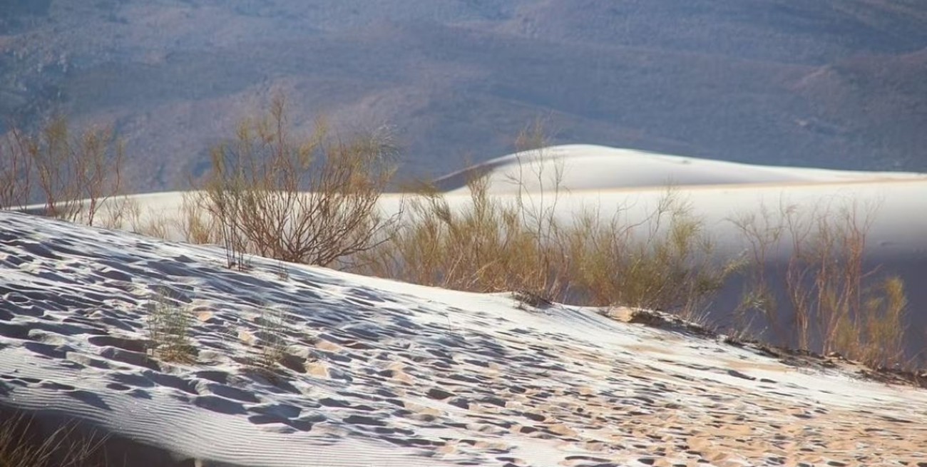 En los últimos días en la ciudad argelina de Ain Séfra se han registrado temperaturas de –2 ºC y, como consecuencia, una capa de nieve cubrió las dunas de arena en los alrededores de la localidad.