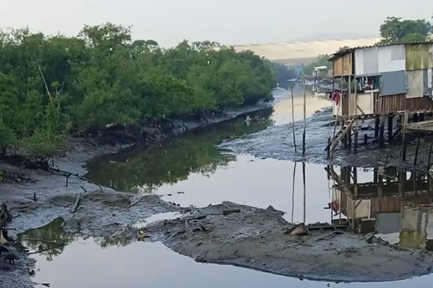 Las casas sobre pilotes en el estuario de Guarujá ponen a la comunidad de Sítio Conceiçãozinha en una zona de riesgo de inundaciones. Foto: Cristiane Santos de Lima