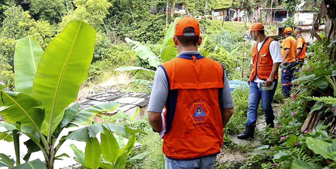 Inspección técnica preventiva del equipo de Defensa Civil de Guarujá en zona con riesgo de deslizamientos de tierra. Foto: gentileza Defensa Civil de Guarujá.
