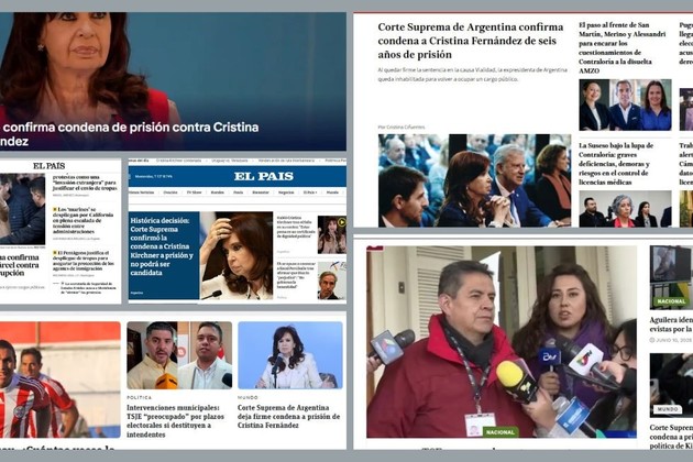 Portales informativos de América Latina, Europa y Estados Unidos reflejaron en sus portadas digitales el fallo contra la ex presidenta, destacando tanto la magnitud política del caso como el contexto de crisis institucional en el que se enmarca.