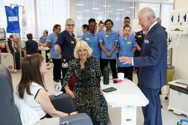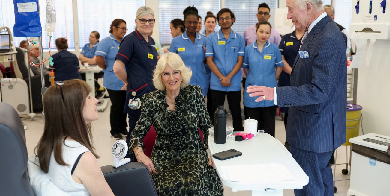 Allí, Carlos III dialogó y se fotografió con una serie de pacientes, acompañado de Camilla Parker Bowles, reina consorte del Reino Unido.