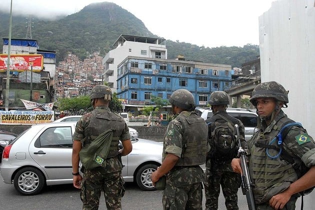 Soldados del Ejército brasileño custodian Rocinha durante las elecciones de 2008.