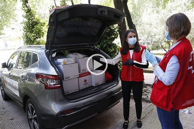 Después, con su chaleco de voluntaria y como presidenta de honor de la Cruz Roja ha visto cómo se entregaban los productos básicos a las personas que lo necesitan.