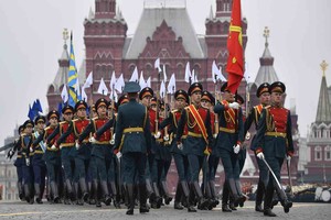 Unos 14.000 soldados participaron el desfile, entre ellos miembros de unidades de algunas ex repúblicas soviéticas, de Mongolia y de Serbia.