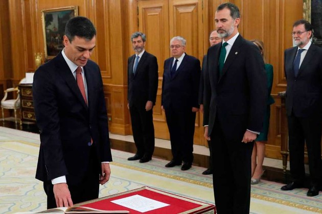 El socialista Pedro Sánchez tomó este sábado posesión de su cargo como jefe del Gobierno español ante el rey Felipe VI tras desbancar al conservador Mariano Rajoy con una moción de censura.