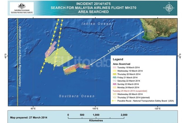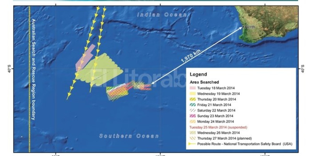 El análisis de los datos de radar y satélite llevó a los investigadores a concluir que el aparato dio la vuelta y acabó en el sur del océano Índico, en un lugar lejano de tierra y que no ofrece esperanzas de encontrar supervivientes.