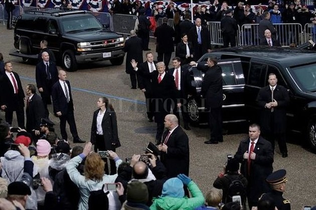 El desfile comenzó con una serie de bandas militares. Trump, su esposa Melania, el vicepresidente, Mike Pence, y su esposa Karen, presenciaron esa primera parte desde las escalinatas del Capitolio y luego se subieron a dos autos blindados para emprender ellos también el camino hasta la Casa Blanca, el futuro hogar y oficina del magnate republicano.