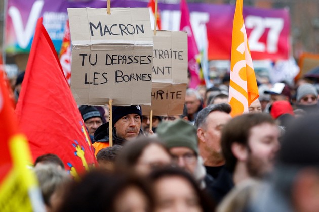 Según los sondeos, dos de cada tres franceses se oponen a su proyecto de retrasar la edad de jubilación para 2030 y adelantar a 2027 la exigencia de cotizar 43 años (y no 42, como ahora) para cobrar una pensión completa.