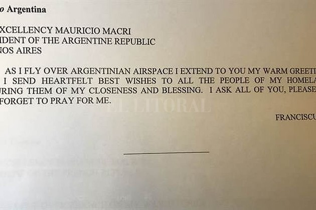 Mientras, el presidente Mauricio Macri agradeció al papa, en nombre de todos los argentinos, el saludo y la bendición que envió al sobrevolar el país, y le manifestó que "la Argentina lo acompaña con el cariño y el respeto de siempre", en un mensaje que difundió a través de la red social Twitter.