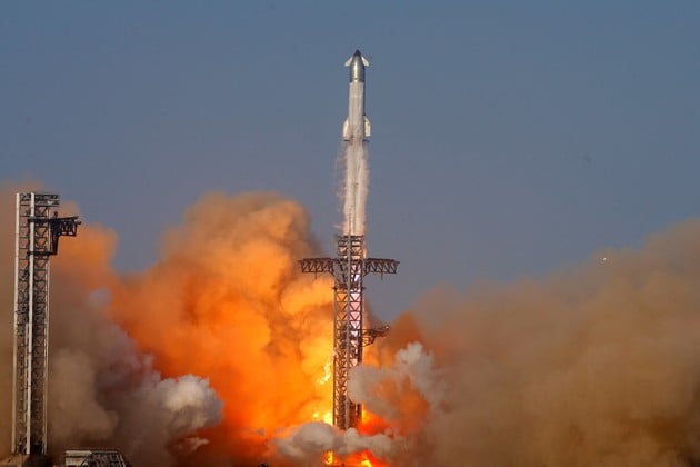 El vehículo de lanzamiento más grande y potente jamás construido despegó alrededor de las 18H36 (23H36 GMT) de las instalaciones de Starbase, cerca de un pueblo del sur de Texas.