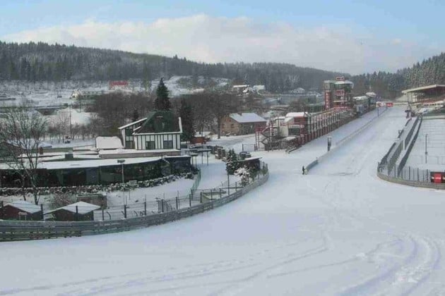 El circuito de Spa-Francorchamps, cubierto de nieve tras una ola polar en Europa