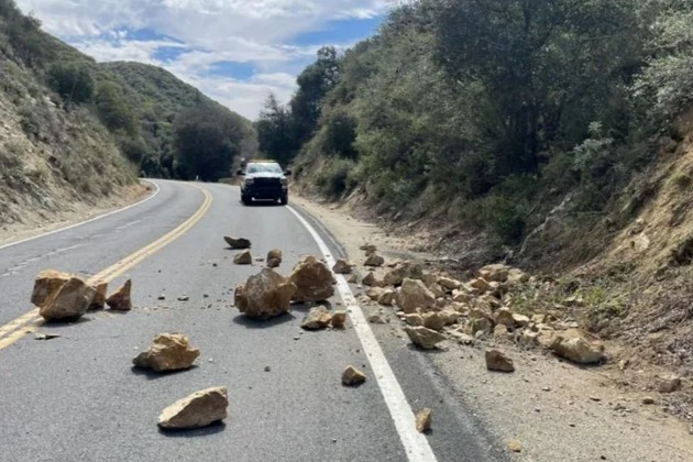 Rocas caen sobre la ruta en el norte del condado de San Diego tras el sismo. (Foto: Caltrans San Diego)