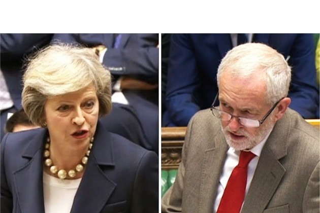 La primera ministra británica, Theresa May, acusó hoy al líder laborista, Jeremy Corbyn, de querer "voltear al gobierno, sembrar divisiones y estrellar la economía".