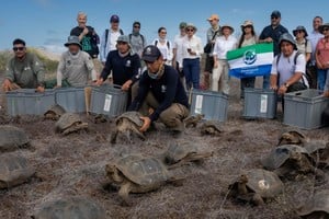 Casi 150 años después de su desaparición, las tortugas gigantes volvieron a la isla Floreana, en el archipiélago de Galápagos. Este viernes, decenas de juveniles fueron liberados para iniciar un proceso de restauración ecológica en un territorio que perdió a su especie emblemática.